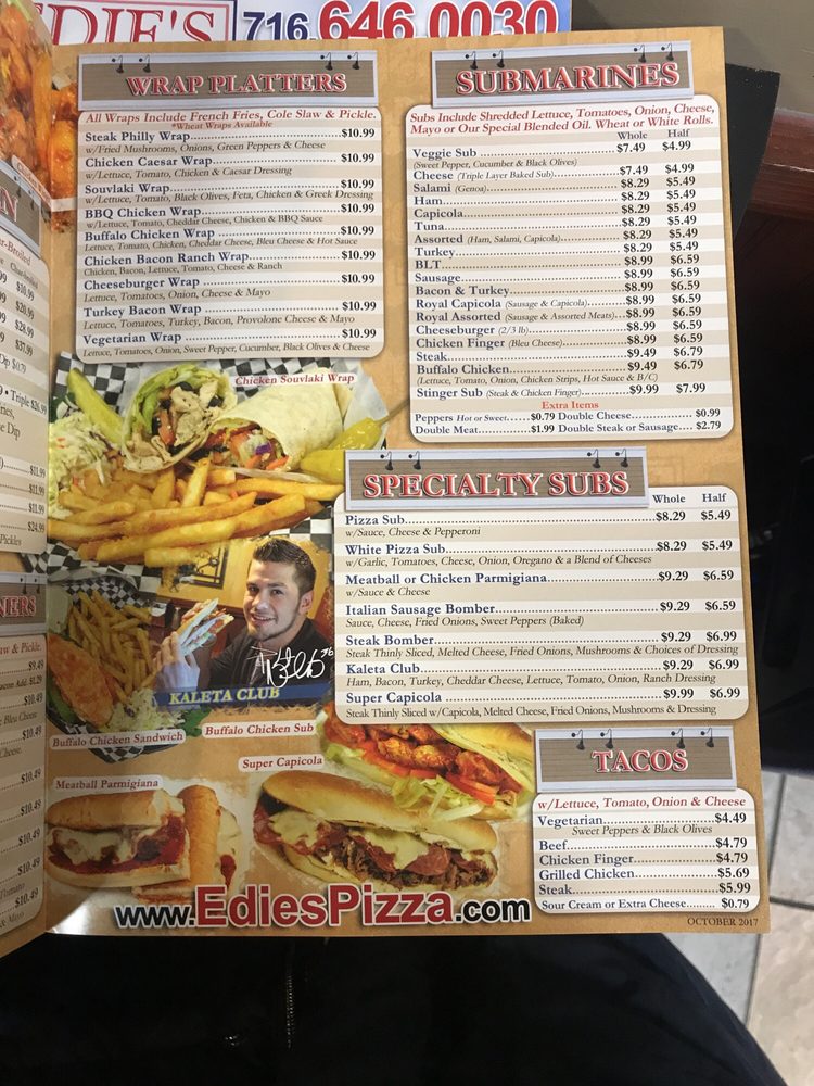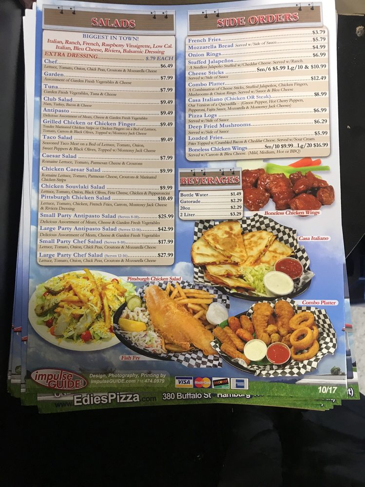 Edies Pizza is a must-visit spot in Hamburg, NY, offering a wide variety of delicious pizzas and sandwiches. Known for its vegetarian options and accommodating menu, Edies Pizza caters to all dietary preferences. With amenities such as outdoor seating, free Wi-Fi, and TV, this casual restaurant is perfect for families and groups looking to enjoy a tasty meal. The menu features options for both lunch and dinner, making it a convenient choice for any time of day. Whether you're dining in or taking your meal to go, Edies Pizza provides a satisfying dining experience. Don't miss out on their alcohol offerings and excellent catering services. Call (716) 646-0030 to make a reservation or place an order for delivery or takeout.